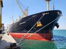 بعد تعرضها لهجوم بصاروخ من قبل الحوثيين في اليمن، تظل سفينة الشحن “روبيمار” مهجورة ...